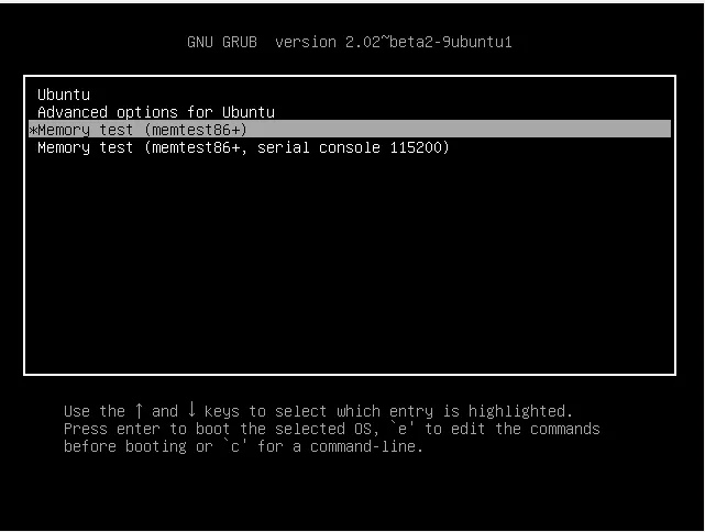 - Using the arrow keys, find the Ubuntu memtest86+ label.
