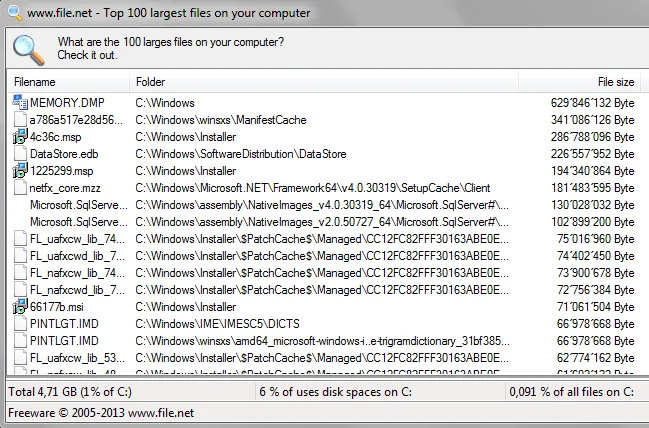 Largest Files Finder is one of those apps that helps you find the top 100 largest files on your computer. It claims to be only taking a minute to scan drives sized upto 200GB. Also, it doesn’t require any installation and works straight out of the box.
