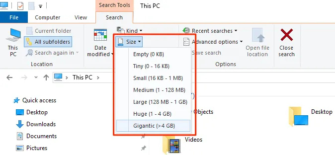 Find Large Files In Windows 10 Using File Explorer