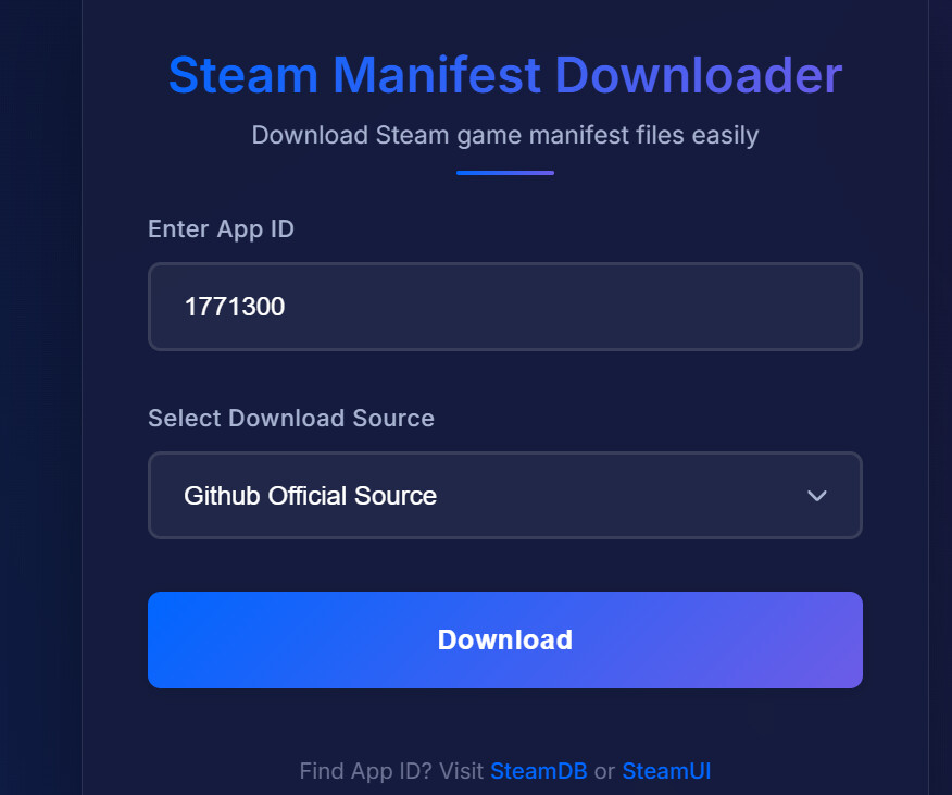 This opens SteamDepotDownloaderGUI โ an official-ish tool you can grab from the developerโs site.