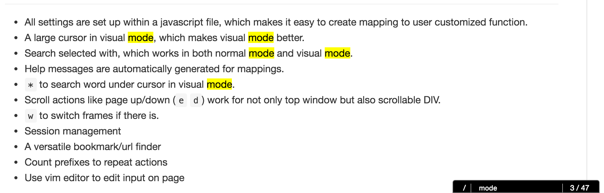 settings.editableBodyCare true Insert mode is activated automatically when an editable element is focused, so if document.body is editable for some window/iframe (such as docs.google.com), Insert mode is always activated on the window/iframe, which means all shortcuts from Normal mode will not be available. With `editableBodyCare` as `true` , Insert mode will not be activated automatically in this case.