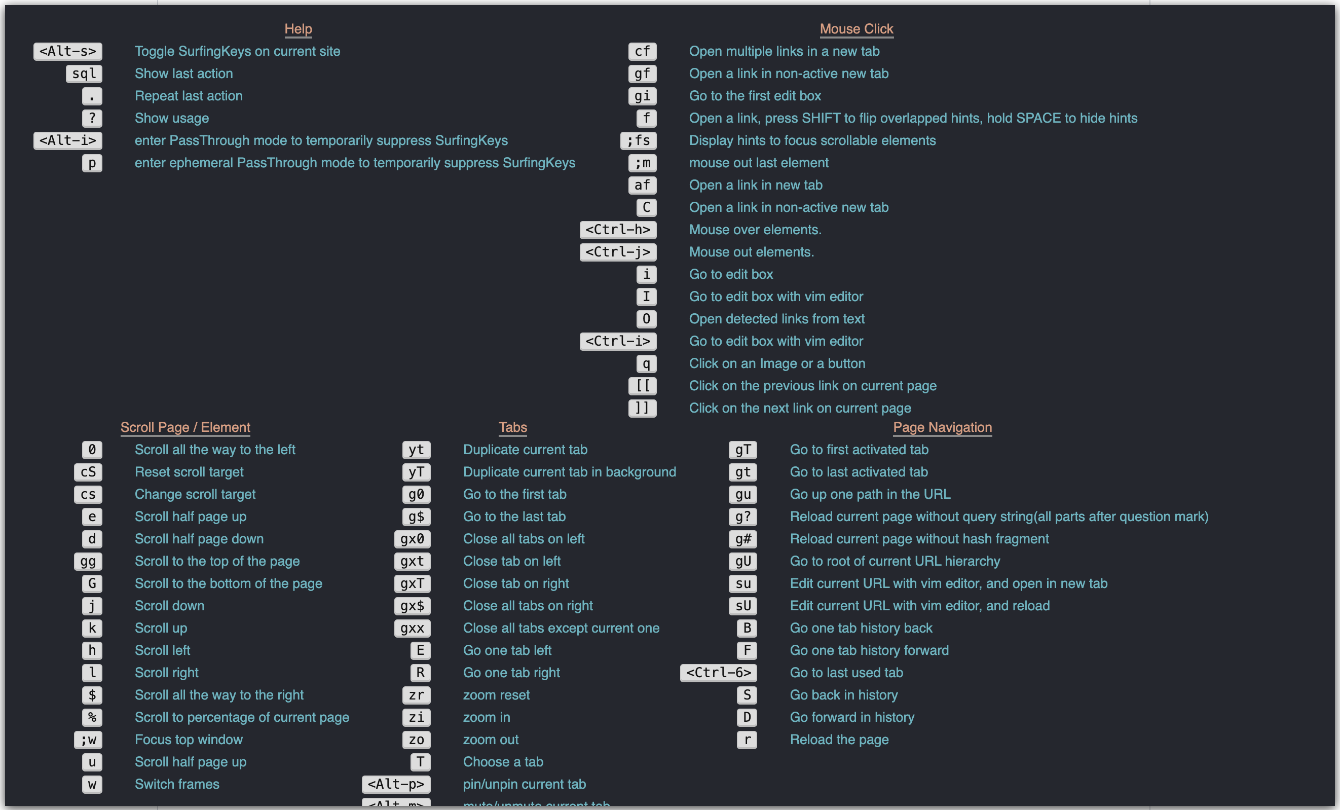 Surfingkeys is another Chrome/Firefox extension that provides keyboard-based navigation and control of the web in the spirit of the VIM editor. But it’s not for VIM users only, it’s for anyone who just needs some more shortcuts to his own functions.