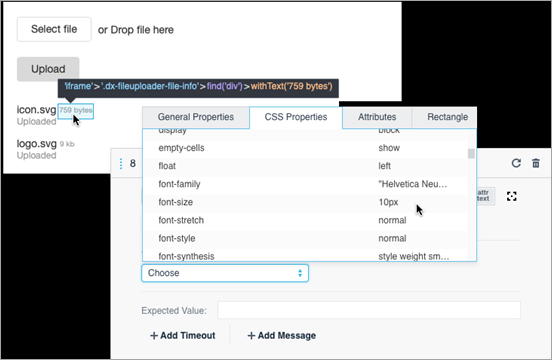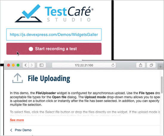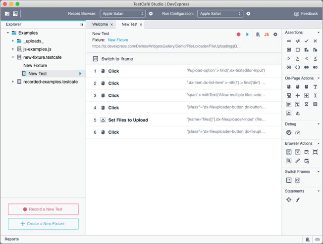 We will select and upload two files and then run two assertions – one for correct file name output and another for proper file size label format. And yes, with TestCafe Studio’s Visual Test Recorder, we’ll only need only a couple of minutes to create and execute that test.