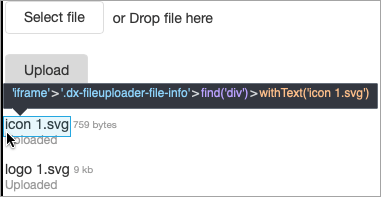 Step #3) This example’s UI is rendered in an IFRAME, so the first action is the context switch. Click and upload steps follow, replicating your actions.