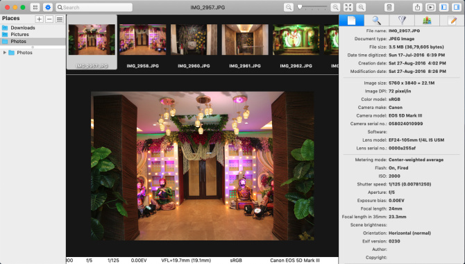 ApolloOne is an intuitive image viewer app that lets you organize and view photos in an efficient way. The app has a built-in camera RAW processing engine so that you can quickly look at images before you import them. The app gives you access to various local and network folders through Places . To configure places, press Cmd + N or click the Browser button on the toolbar.