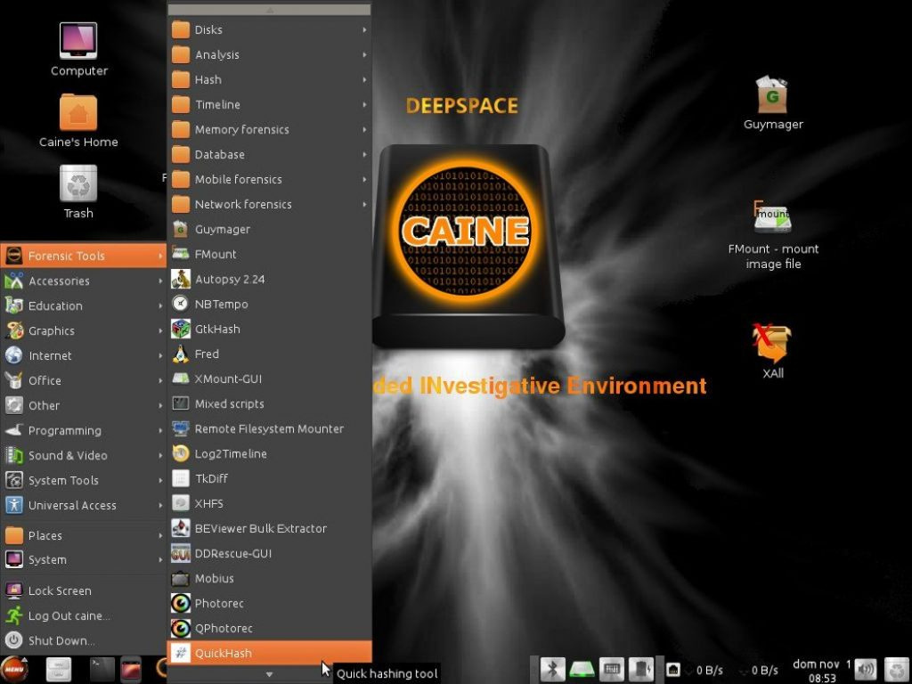 Caine offers a complete forensic environment that is organized to integrate existing software tools as software modules and to provide a friendly graphical interface. The main design objectives that Caine aims to guarantee are the following: