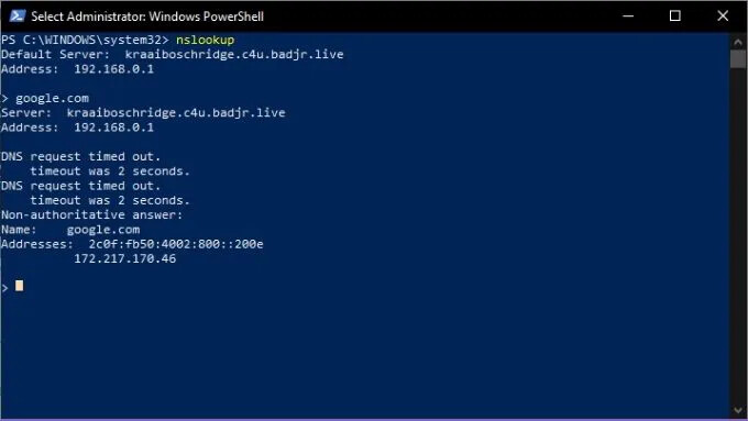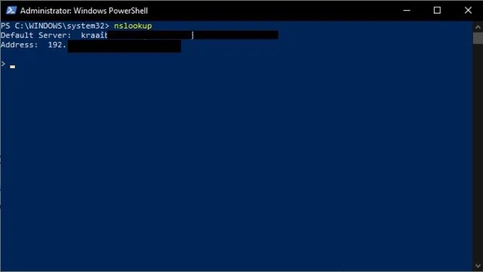 Note that NSlookup is still running and you are at its command line, not PowerShell. If you want to go back to PowerShell, type exit and press enter.