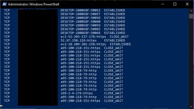 - Netstat -n – lists currently connected hosts