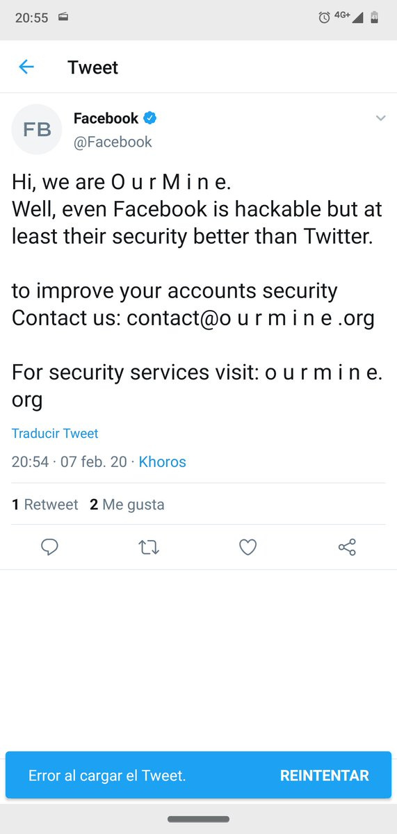 “Well even Facebook is hackable but at least their security is better than Twitter,” the hackers tweeted just before 7 p.m. They said businesses interested in improving online security should visit OurMine’s website.