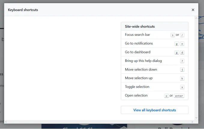 Almost every page on GitHub includes a list of shortcuts that can be used on that specific page. You can access the shortcut by typing “?” into a dialogue box.