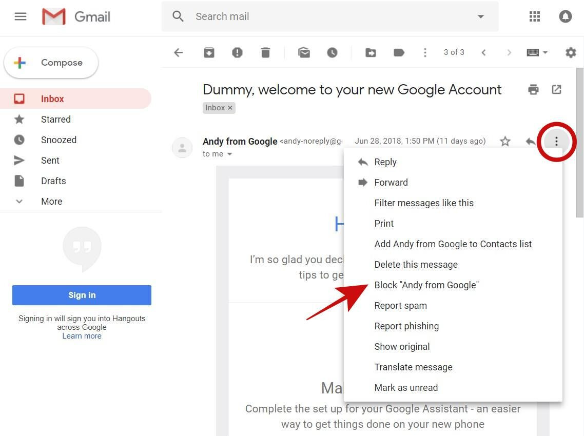 If you receive an email that you find fishy or suspicious, and you do not wish to receive any further emails from the same sender, then you can block the sender. Gmail will automatically send his future emails to Spam in your inbox.