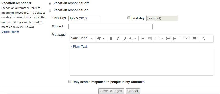 - Vacation responder: It should be turned on or off based on your configuration, and its content is correct.