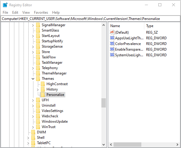 Computer\HKEY_CURRENT_USER\Software\Microsoft\Windows\CurrentVersion\Themes\Personalize