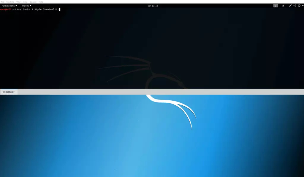 Installing Guake Terminal doesn’t go on place 4 for the Top Things to do after Installing Kali Linux for nothing. I absolutely love this Drop Down Terminal and can’t live without it anymore. If you have ever played Quake 3 (Rocket Arena, anyone?), or any old Shooter, you might remember you were able to pull down a console by pressing Tilde (^), mostly to enter codes like “god” or “noclip” that made your character a levitating god that ignored walls.