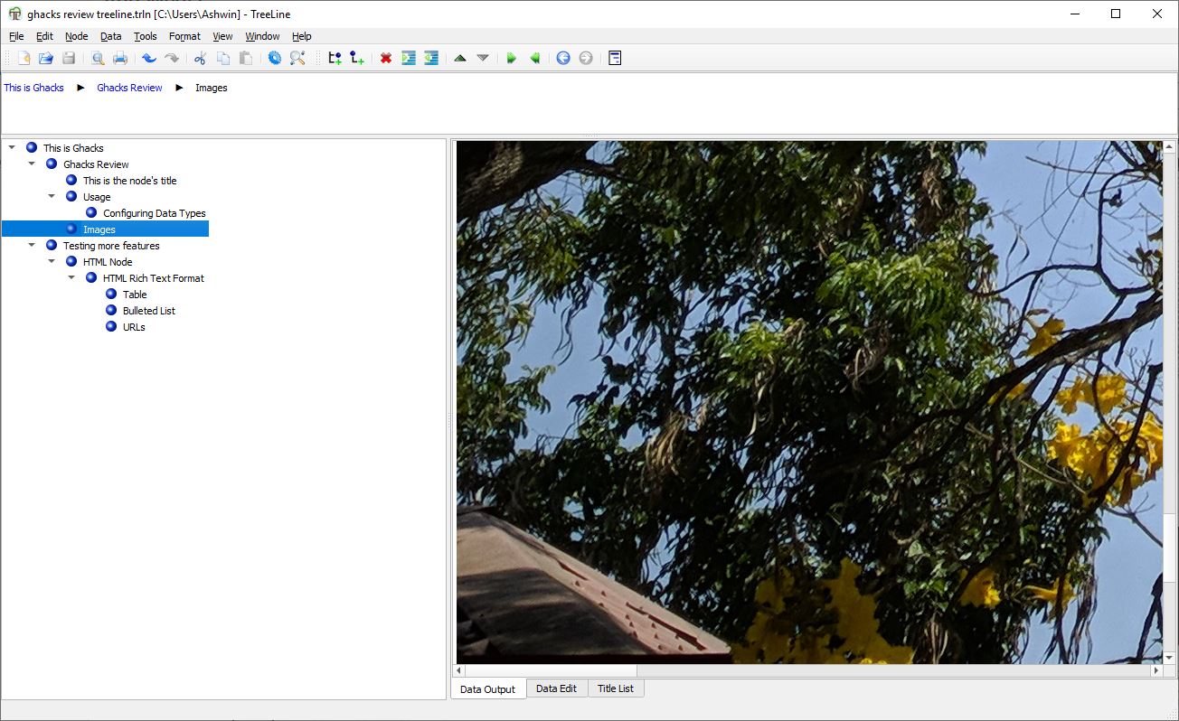 Select Apply and then the OK button to close the “Configure Data Types” window. Whew! That was a bit difficult, wasn’t it? Let me explain what we did here. We created a new text box called “Plain_Text” that we can use for saving notes, and we also had to set TreeLine to display the note in the output viewer.
