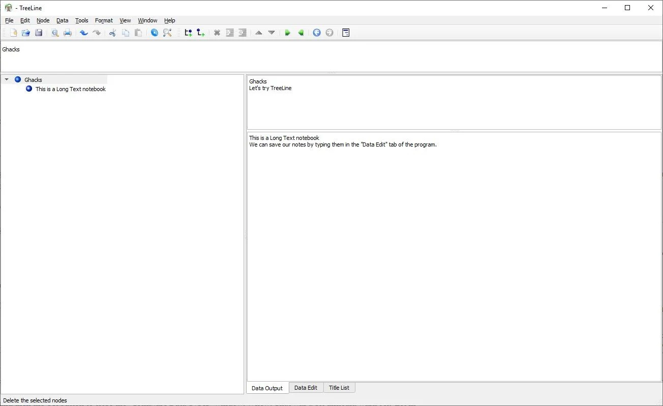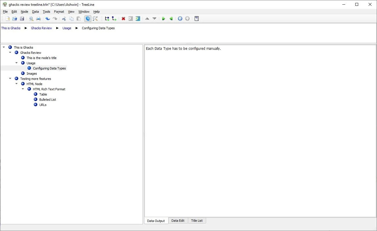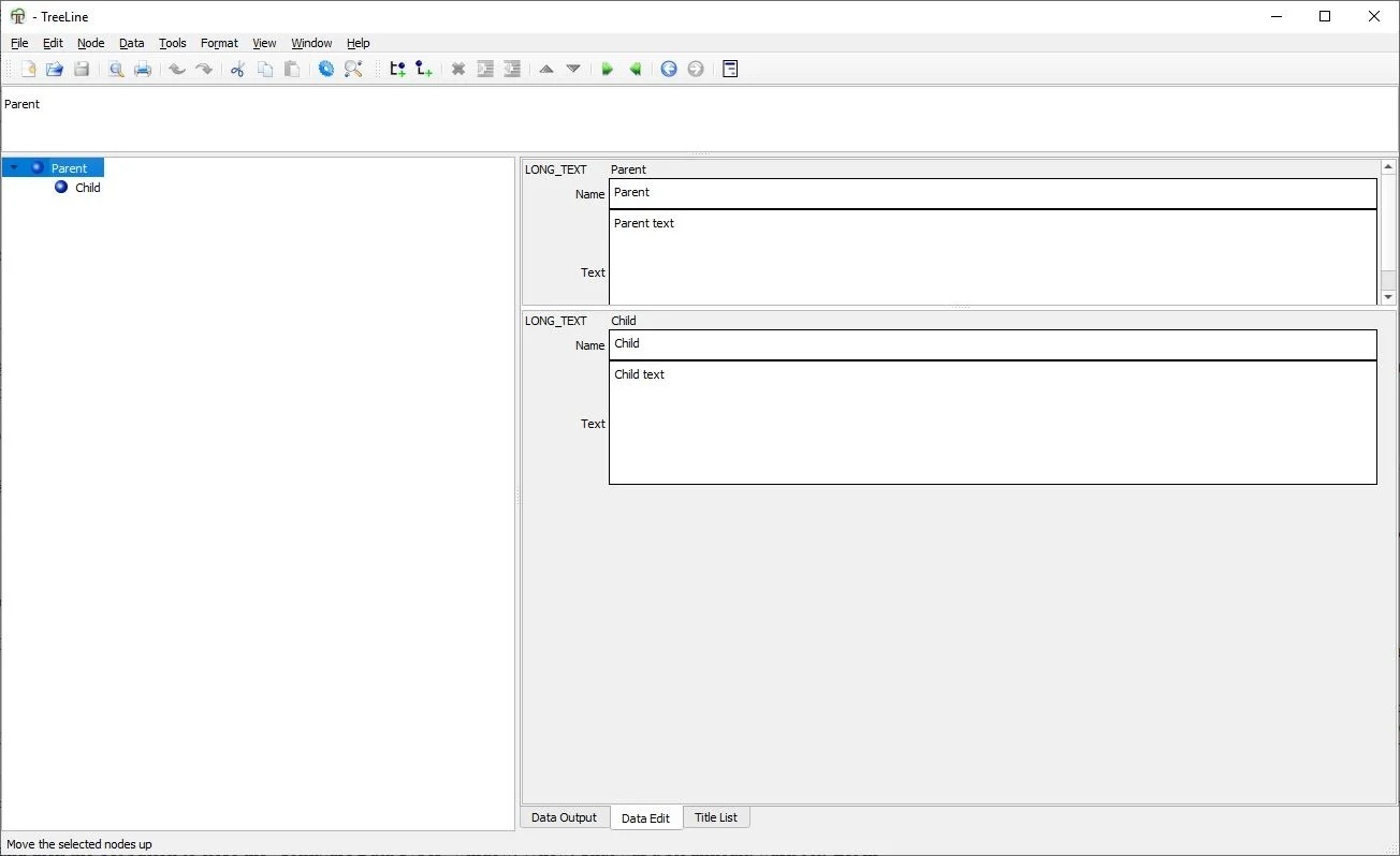 TreeLine’s manual configuration has a learning curve which can be a little difficult to grasp, but it’s quite rewarding. If you use one of the other options (like Long Text), it’s pretty simple to use.