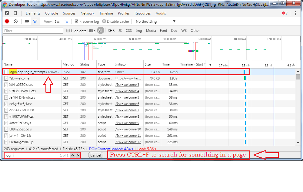 - As next, click on the keys CTRL+F together. This key combination can be used to search for an element on a page. Once the search bar pops up, type-in login to it. You will see a link starting with login.php on the top of the search results. Click on it.