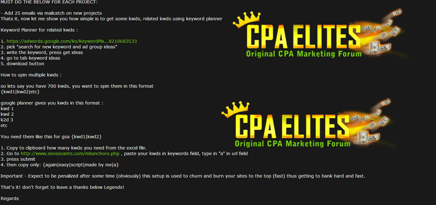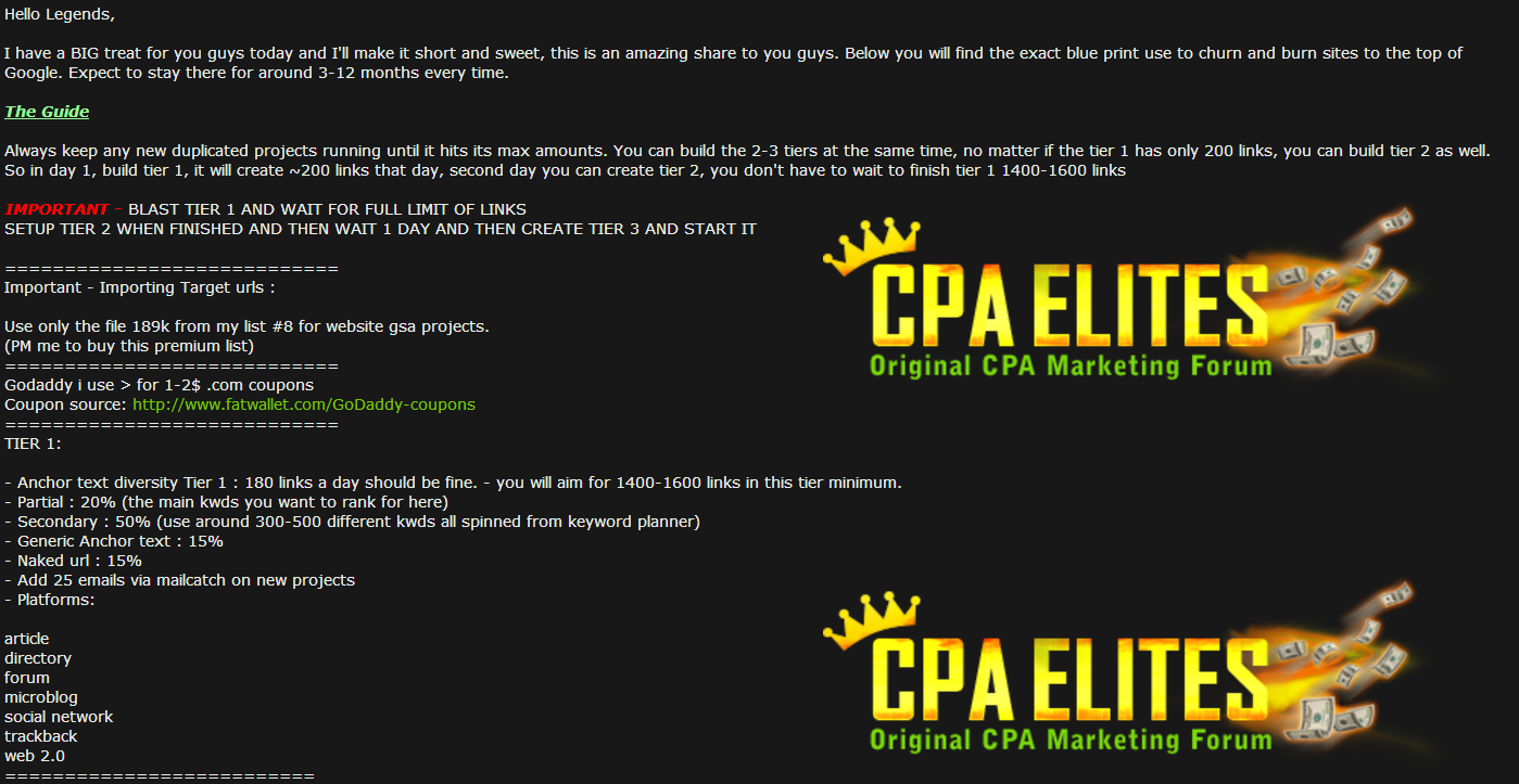 Final note - This exact system is something works very smooth, this system will enable you to stay ranked for longer than the FAST aggressive methods out there, for me itโs better to stay ranked for 3-12 months than only 2-3 at a time. You can expect good rankings but also expect to be caught out after some time, thatโs the name of the game with churn and burn. You can tweak the settings to suite your needs of course, but, personally this is something I have been using to great success.