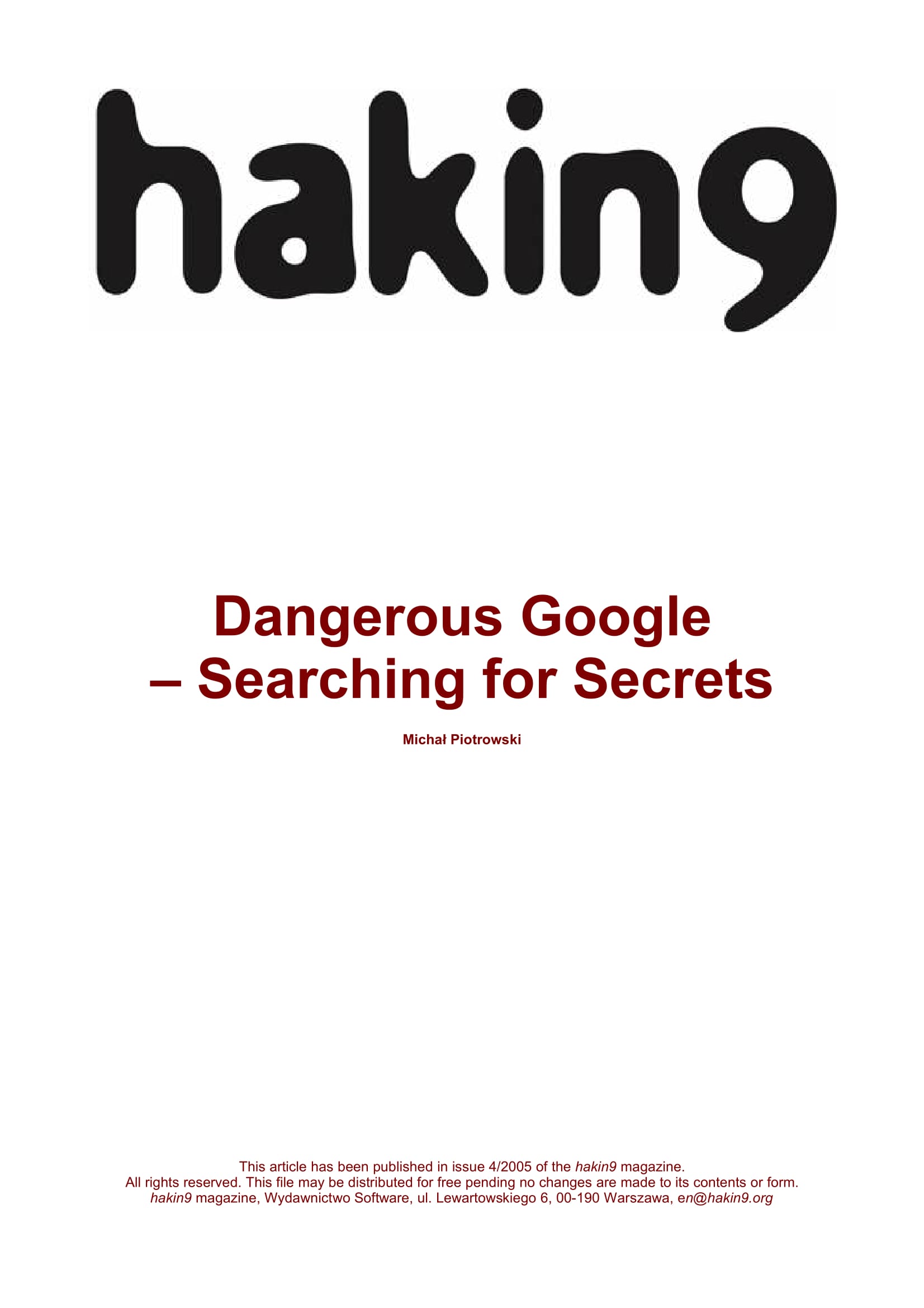 | Excellent Tricks & Techniques Of Google Hacks | 1 | 1901 | February 3, 2021 | |