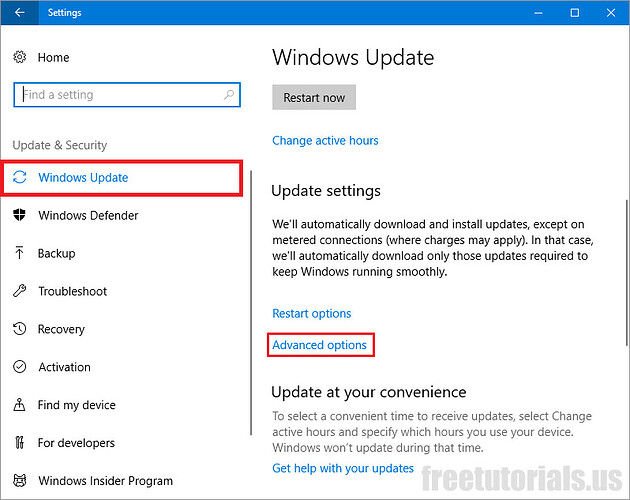 - Now, click on Windows updates, scroll down a lil & click on “Advanced options” under “Updates settings” section