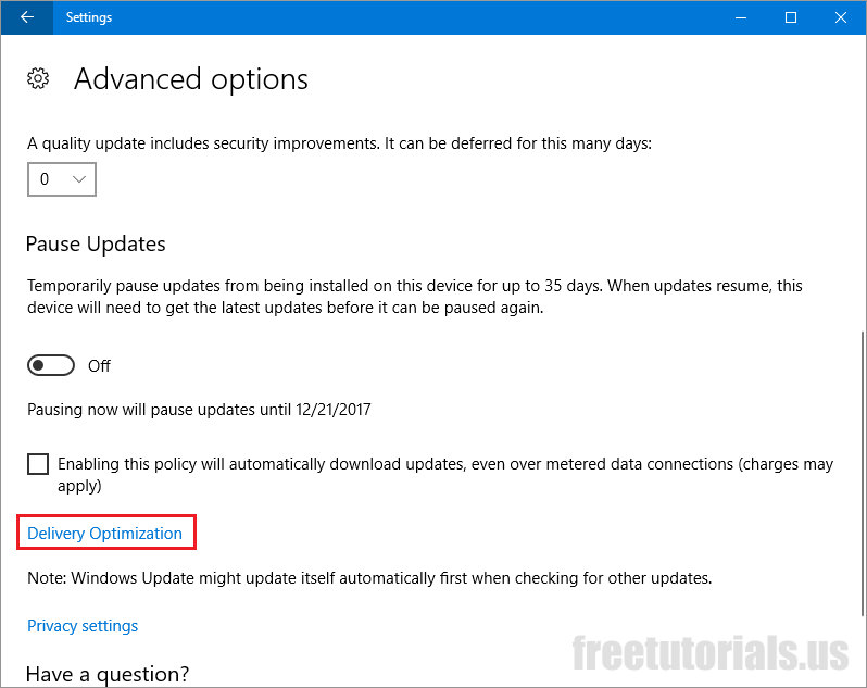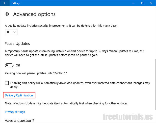 - In next window, scroll down & click on “Delivery Optimization” hyperlink & wait for next window.