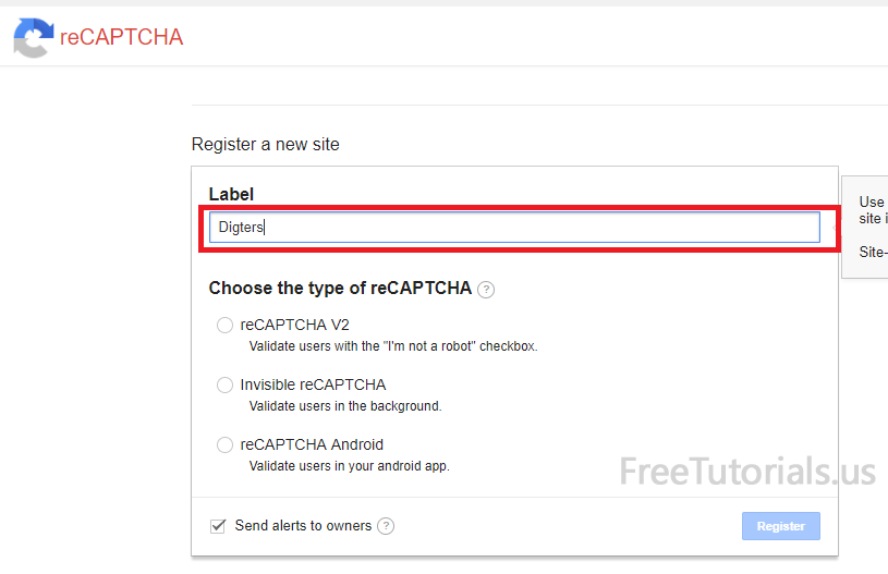 - Now, Go to THIS LINK & sign in to your google account & you should see a box, type in a label for your website.
