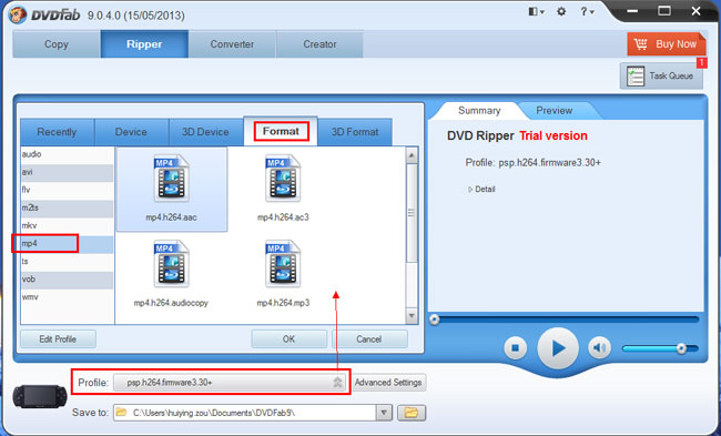 Now click to open the profile list, in which you can go to Format to choose one mp4 profile. Any mp4 profile listed here is OK. Just select your favorite one.