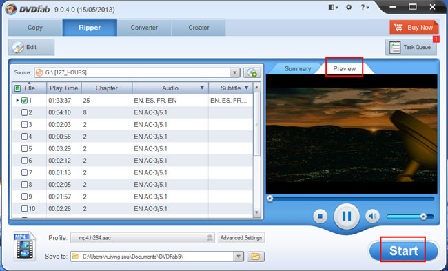 Alright, now just preview the title in real time to confirm your settings and selections. If everything is OK, go ahead to click Start button to start conversion.