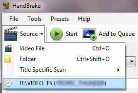 • When you launch the HandBrake program, click the Source button and select the DVD from the drop-down menu. HandBrake will then scan the disc for titles to copy. This step can take some time, depending on how much data is on your disc.