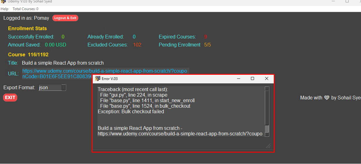 Leave it, If Some Sites Are Not Loading Well, you Will See This Type Of Error. Ignore And Use It To Fetch Other Courses!