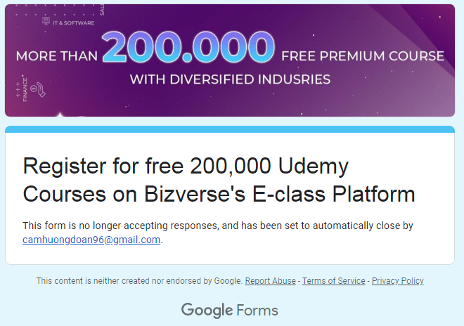 It is saying " This form is no longer accepting responses, and has been set to automatically close by [email protected]."