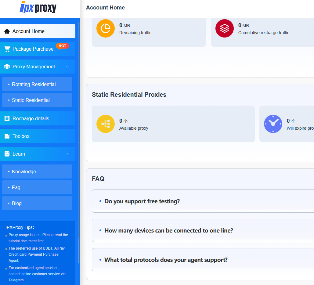 | 3 | Download the IPXProxy app (Windows/Mac) from the dashboard |