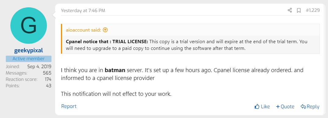 The owner of this service continuously answering question on another platform.