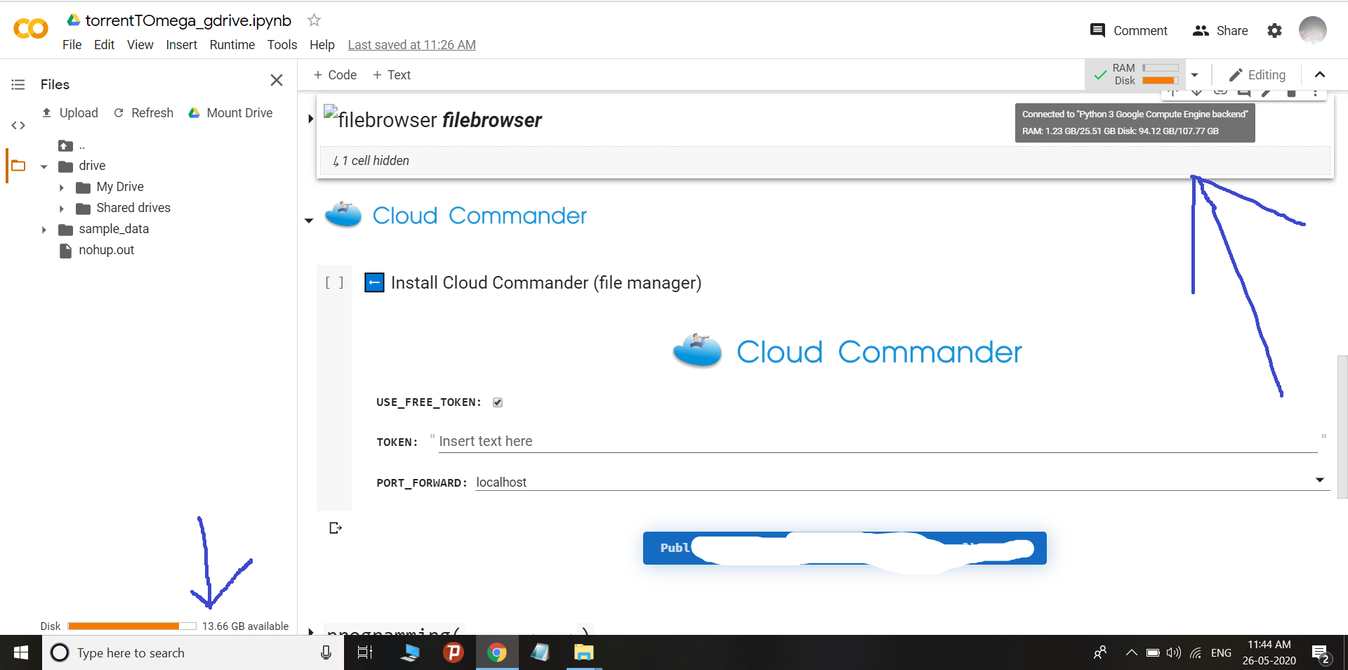 - open the notebook from Google-Colab-CloudTorrrent in Google Colab