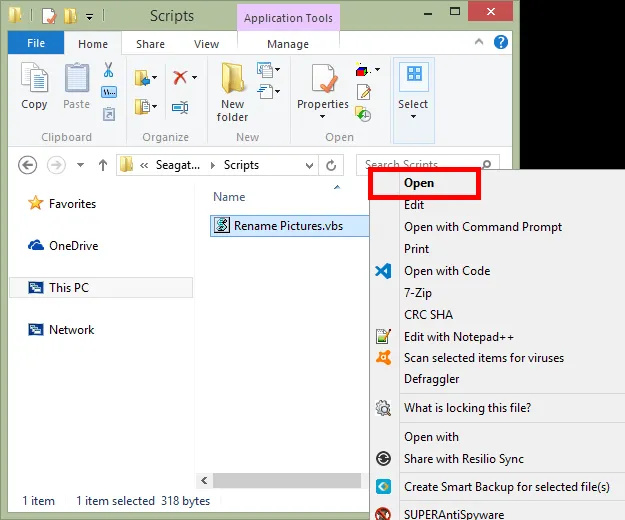 That’s it! To edit the VBS file to change the location of the files to rename, or to adjust what to replace in the files, just right-click the VBS file like you see above, but instead of opening it, choose Edit .