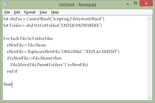 To do that, you need to change the text called ENTER\PATH\HERE to the exact folder where your soon-to-be-renamed files are located.