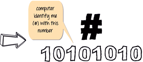 For example, the # symbol is identified by computer as 10101010. Similarly, the pattern for adding a function is represented by 10000011.