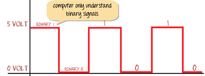 The computer is an electronic device, and it can only understand electronic signals or binary signals. For example, the 5-volt electronic signal may represent binary number 1 while 0 volts may represent binary number 0. So your PC is continuously bombarded with these signals.