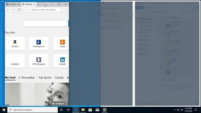 - Press and hold the shift key, and click and hold on the top-bar of any program. Drag it across the screen. As you pass into the different zones, it will conform to that zone. Release the mouse button to drop it in the zone you want.