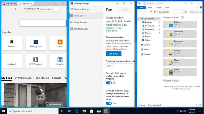 Fancy Zones is billed as a way to “create window layouts to help make multi-tasking easy.” If you’re working in a few programs you need to jump back and forth between, it could make your life a little easier.
