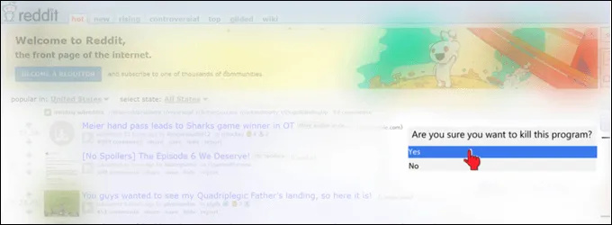 An Are you sure you want to kill this program? prompt will open and the user can choose Yes or No . The image below shows a prototype from the Process Terminate Tool page on GitHub.