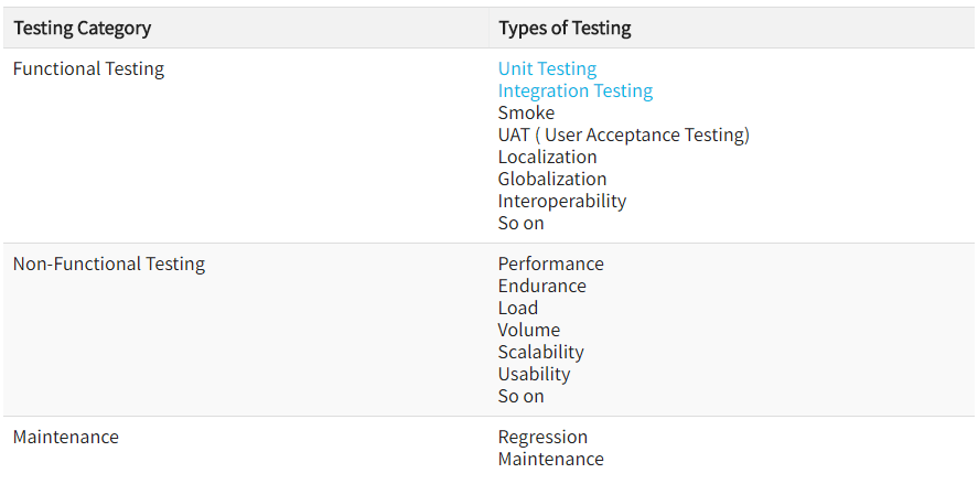 This is not the complete list as there are more than 150 types of testing types and still adding. Also, note that not all testing types are applicable to all projects but depend on the nature & scope of the project.