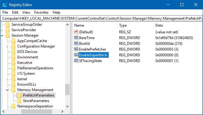 Step 3: Disable Superfetch. In the right panel, you should see a key called EnableSuperfetch. Right-click on it and select Modify… to bring up the key editor. To disable Superfetch, change Value Data to 0 and click OK.