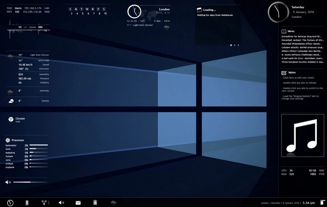 Cons: Rainmeter eats your RAM, so you don’t have many Free RAM left. However, it can use quite a bit of system resources if you have too many skins loaded.