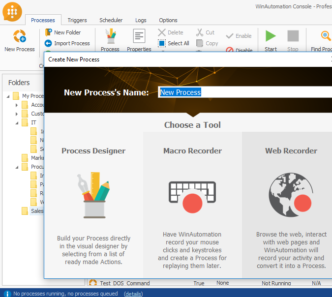 Automate your computer-tasks through the most easy-to-use and intuitive design environment. WinAutomation is quick to learn for beginners (non-programmers), while providing complete control and flexibility for advanced users, programmers and developers. Build processes without requiring to write a single line of code. Develop from scratch with the drag-and-drop user interface, or use the Macro Recorder and Web Recorder to automate workflows based on your day-to-day activities. Develop, configure, troubleshoot and test a Process without requiring programming skills or technical background.