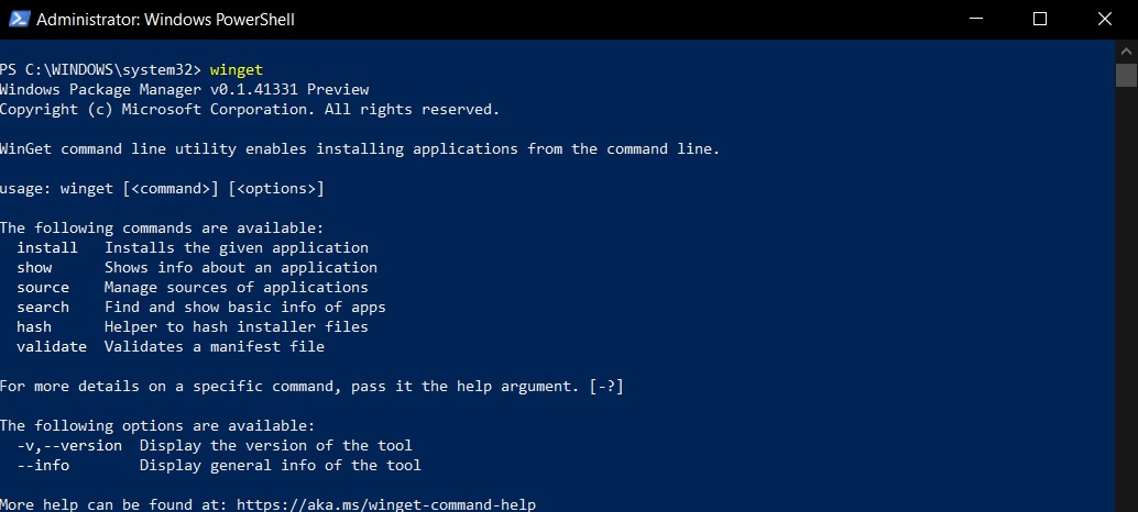 - In PowerShell, type “winget” to start using the Package Manager.