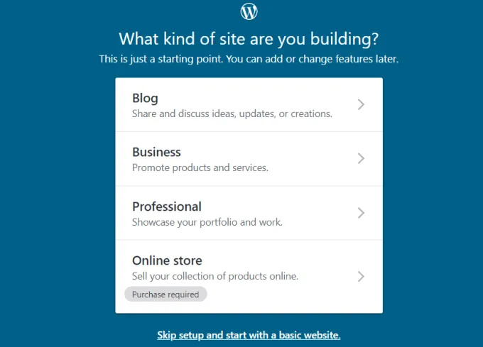 You can select from any of these templates, or just opt to create a site with a basic template.