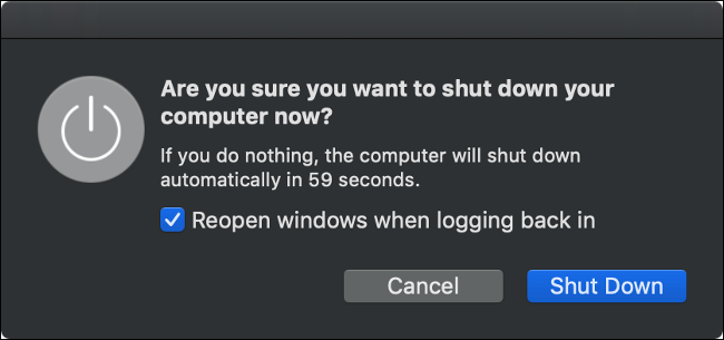 Once you’ve started the shutdown process, you need to wait. Even if you leave the box checked to “Reopen windows when logging back in” you’ll still have to wait for your currently-open applications and windows to close before your Mac shuts down.