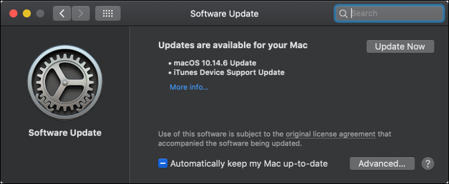macOS also needs to be regularly updated to keep on top of issues. You can check for software updates under System Preferences > Software Update. While you’re there, you can enable automatic updates by clicking on “Advanced…” then checking the relevant boxes.