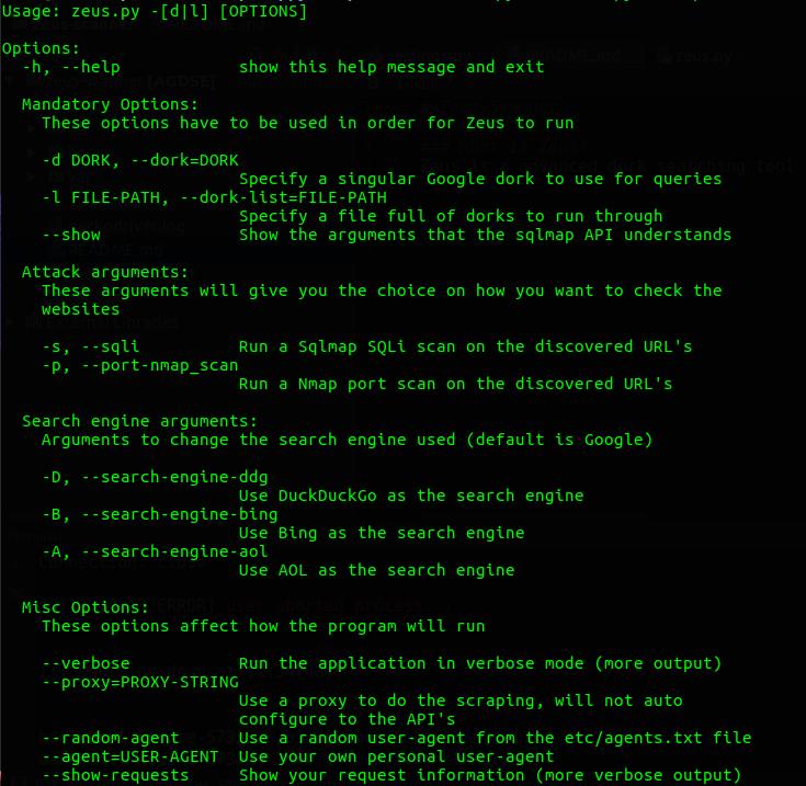 Zeus is a advanced dork searching tool that is capable of bypassing search engine API calls, search engine captchas, and IP address blocking from sending many requests to the search engine itself.